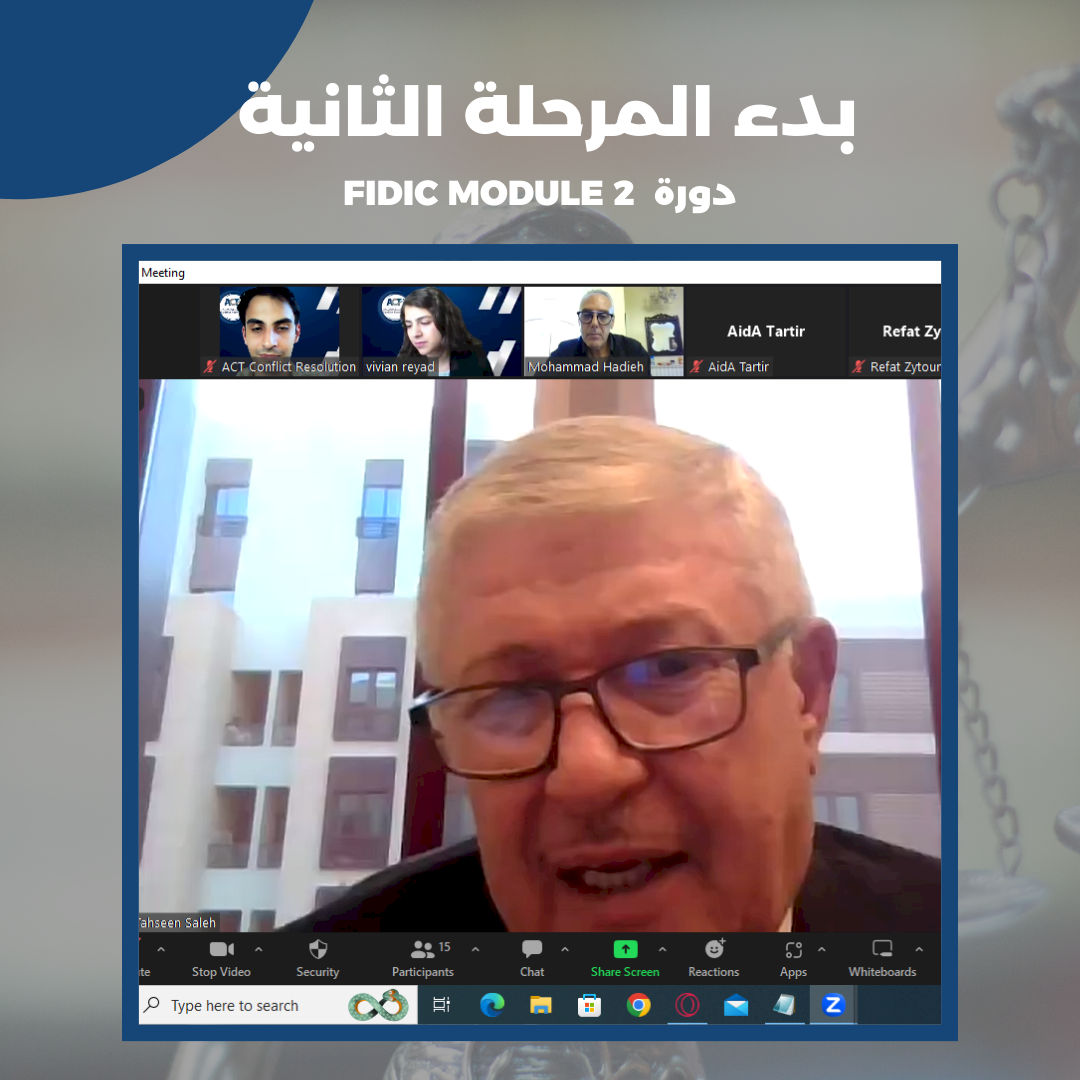 تم عقد اللقاء الأول من دورة (2) FIDIC Module يوم الأربعاء، الموافق 27 تموز 2023. يأتي هذا التدريب ضمن مشروع تعزيز دور وسائل حل النزاعات البديلة في مدينة القدس، والذي تنفذه مؤسسة ACT لحل النزاعات بالشراكة مع وزارة العدل وبدعم من برنامج سواسية المشترك.